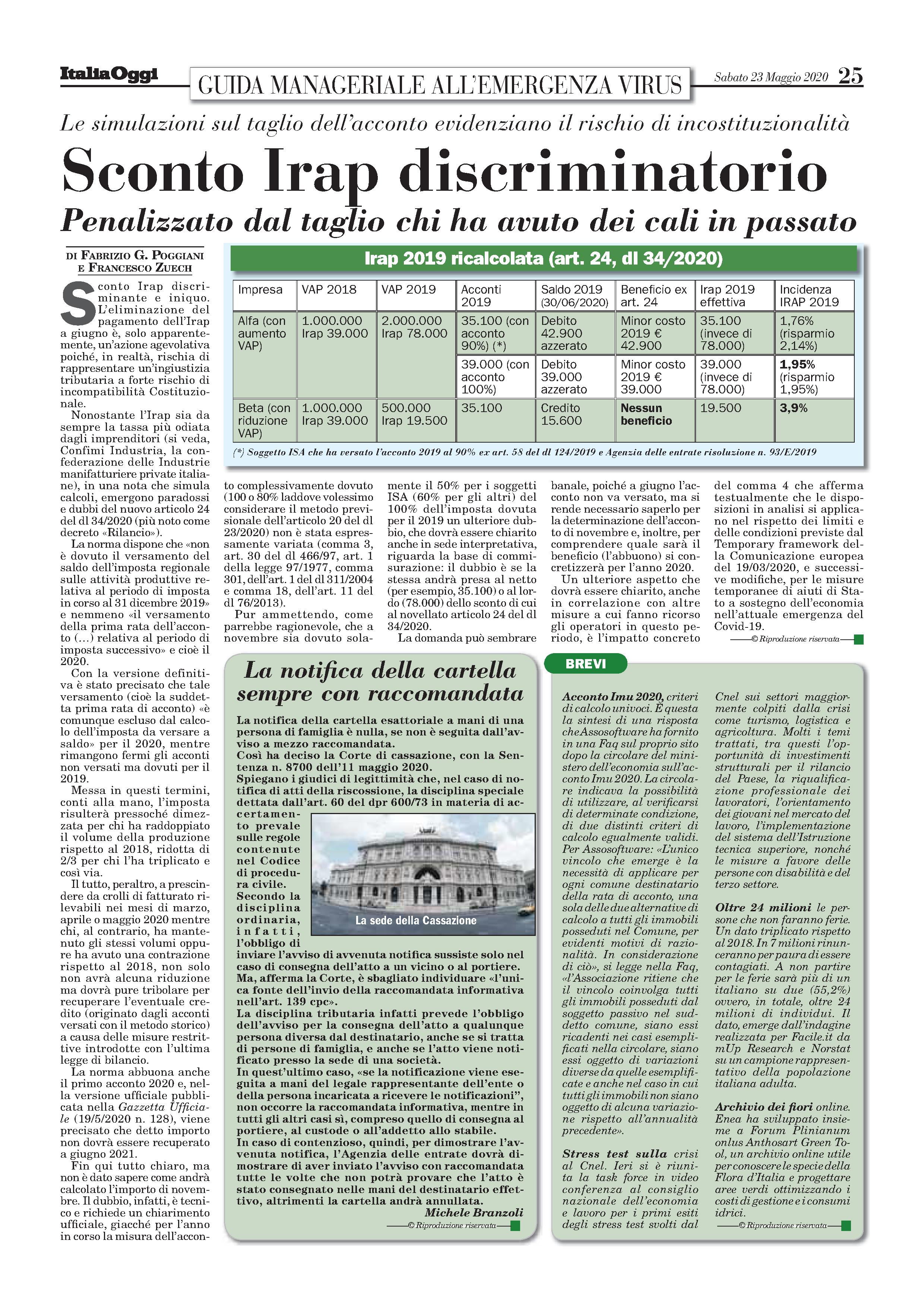NotizieRassegna Stampa Il taglio dell’Irap penalizza le imprese che hanno subìto cali nel fatturato Admin Inrl 23 Maggio 2020 Su ItaliaOggi i risultati delle simulazioni sul taglio dell’acconto che evidenziano il paradosso di una penalizzazione per le imprese che rischia di diventare una vera e propria ‘ingiustizia tributaria’. Post Views: 1.846