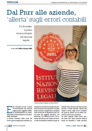Nel numero di maggio-agosto del periodico GENTE IN MOVIMENTO un lungo ed esaustivo articolo con le osservazioni della consigliera nazionale dell’INRL, Camilla Rubega, sugli alert per gli errori contabili dal Pnrr alle aziende.