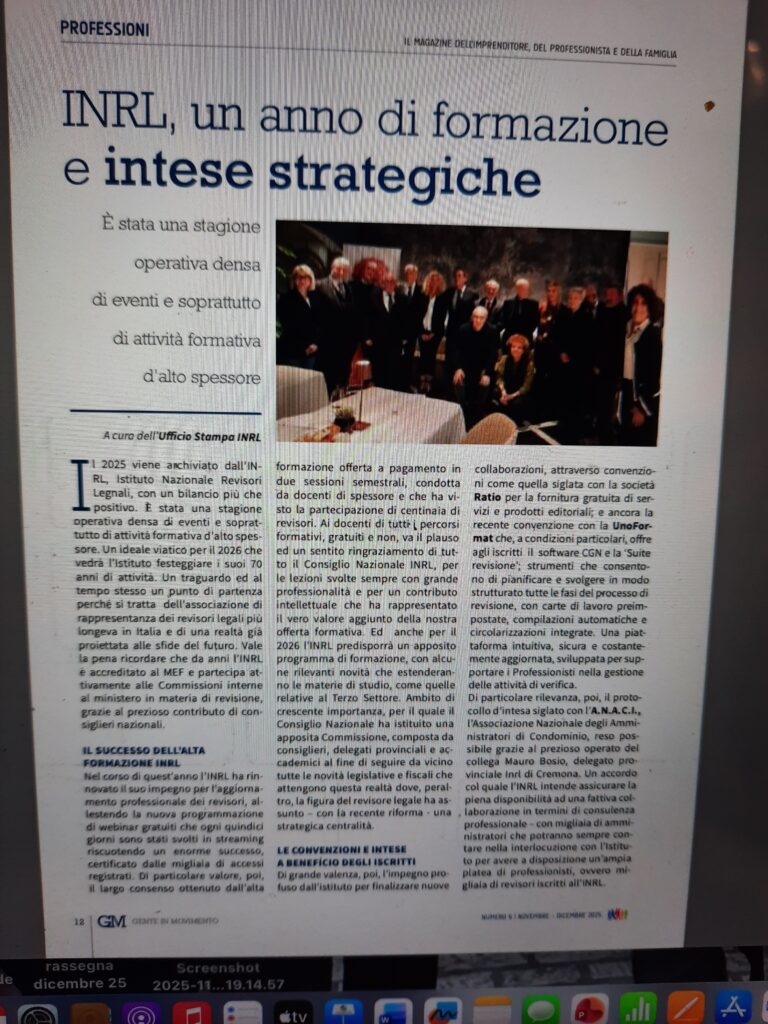 Sulla rivista ‘Gente in Movimento’ ampio spazio all’INRL con un resoconto sull’attività dell’istituto nel 2025 ed una analisi dei nuovi scenari dell’ESG a cura dei due consiglieri Inrl, Camilla Rubega e Dino Sandiano.