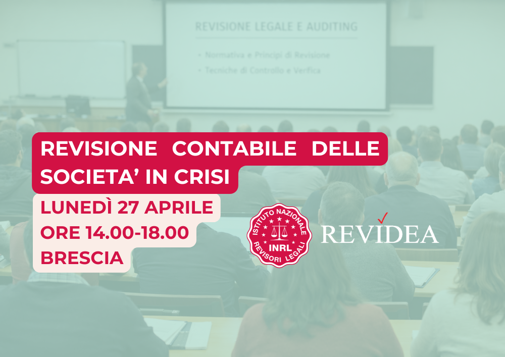 Lunedì 27 aprile, presso la Sala biblioteca dell’ Università degli Studi di Brescia, in Via San Faustino 74/B, dalle ore 14.00 alle ore 18.00, l’INRL, in collaborazione con la società di formazione Revidea SRL, organizza un incontro formativo frontale completamente gratuito sul delicato e quanto mai attuale argomento della Revisione Legale nelle società in crisi.